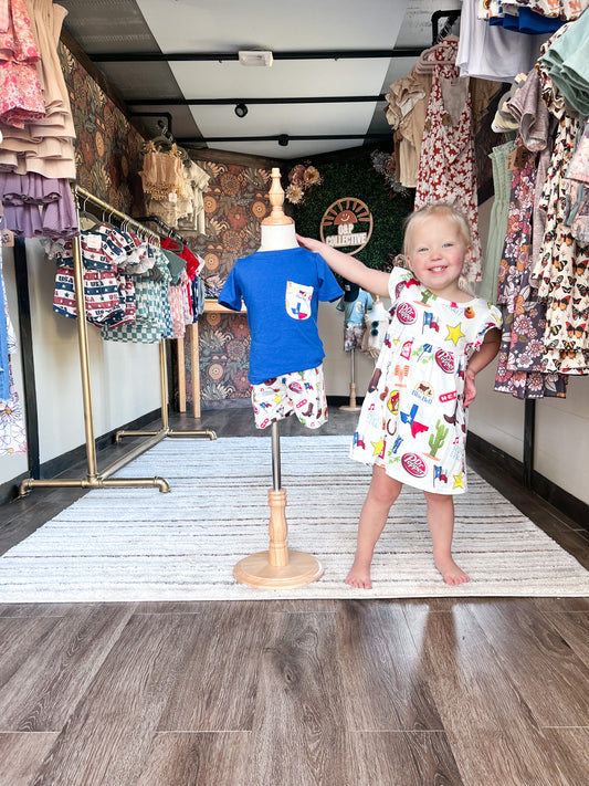 Welcome to Texas flutter sleeve dress